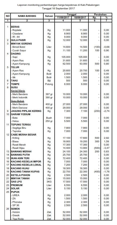 Sumber : Dinas Perindustrian, Perdagangan, Koperasi dan Usaha Kecil dan Menengah Kabupaten Pekalongan